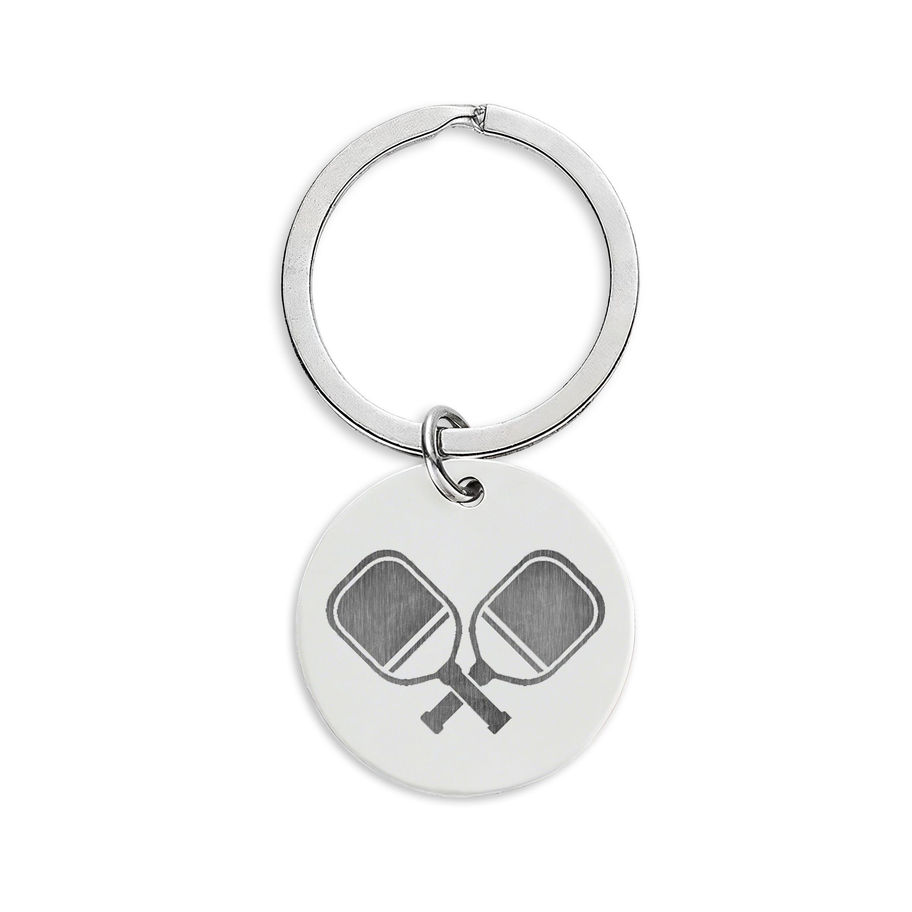 Pickleball Engraved Stainless Steel Round Keychain